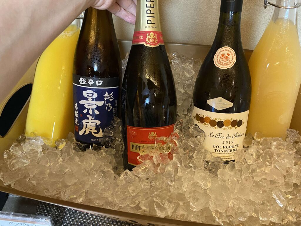 お酒に関しては、シャンパンや赤ワインなど、豊富なメニューが揃っていました。