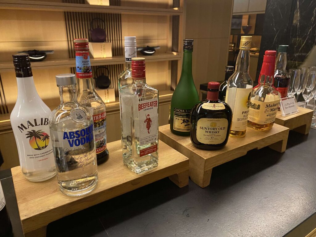 ▼リキュール類も他のラウンジ同様に揃っている感じでした。自由に自分でカクテルを作れるのは嬉しいですよね。コロナがなかったら、作っている人がいるのかなあ。