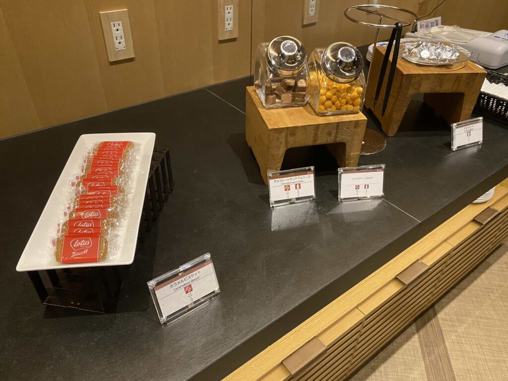 お菓子類のラインナップもここのラウンジが一番好きだった!このラウンジは、夕食代わりになりそうなしっかりとしたメニューも提供。