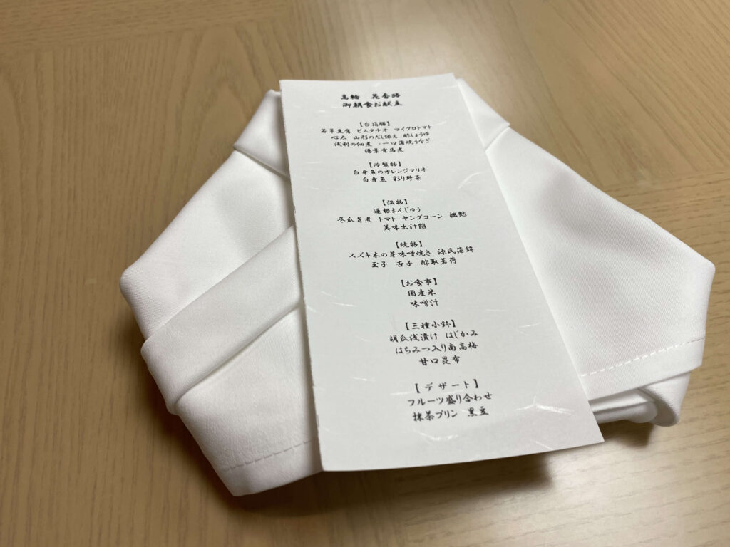他のラウンジでも朝食は取れるのですが、このメニューを見る限りこの花香路のが一番豪華かなと思います!他のところはアメリカンブレックファーストとかだったので!