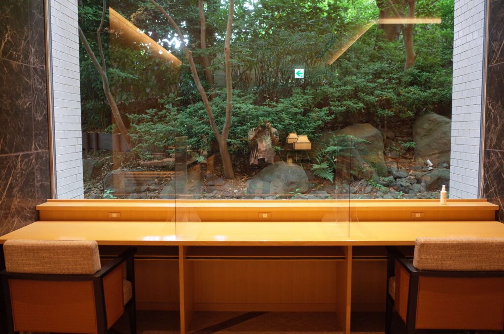 眺望は微妙です(笑)1階部分にあるのですが、実質地下みたいな作りといいますか、庭園が高い位置にあるので、1階のラウンジからの眺望は微妙な感じになります。
