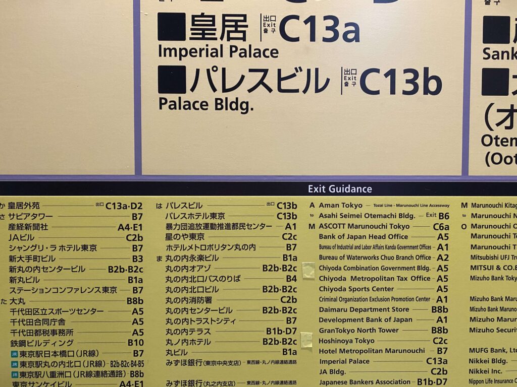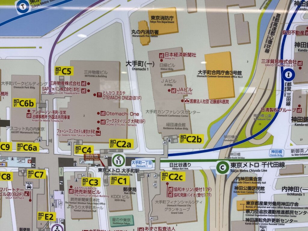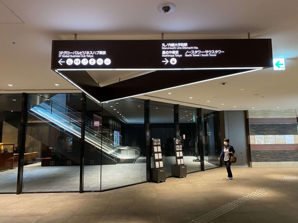 今回のスタートは、大手町駅!直結だったので、地下の通路で星のや東京へ。星のやはC2cだったので、それに向かって歩いていきましょう。