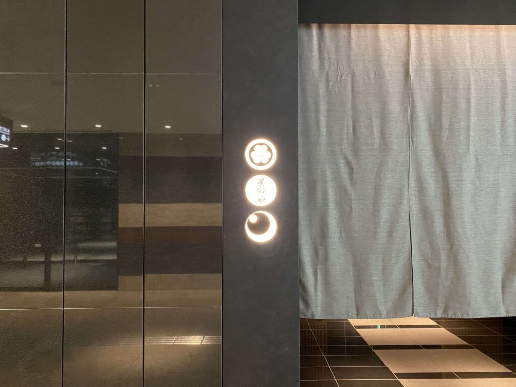 看板に星のや東京の文字を見つけたら、出入り口はすぐそこ!