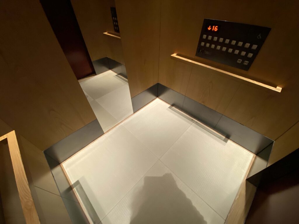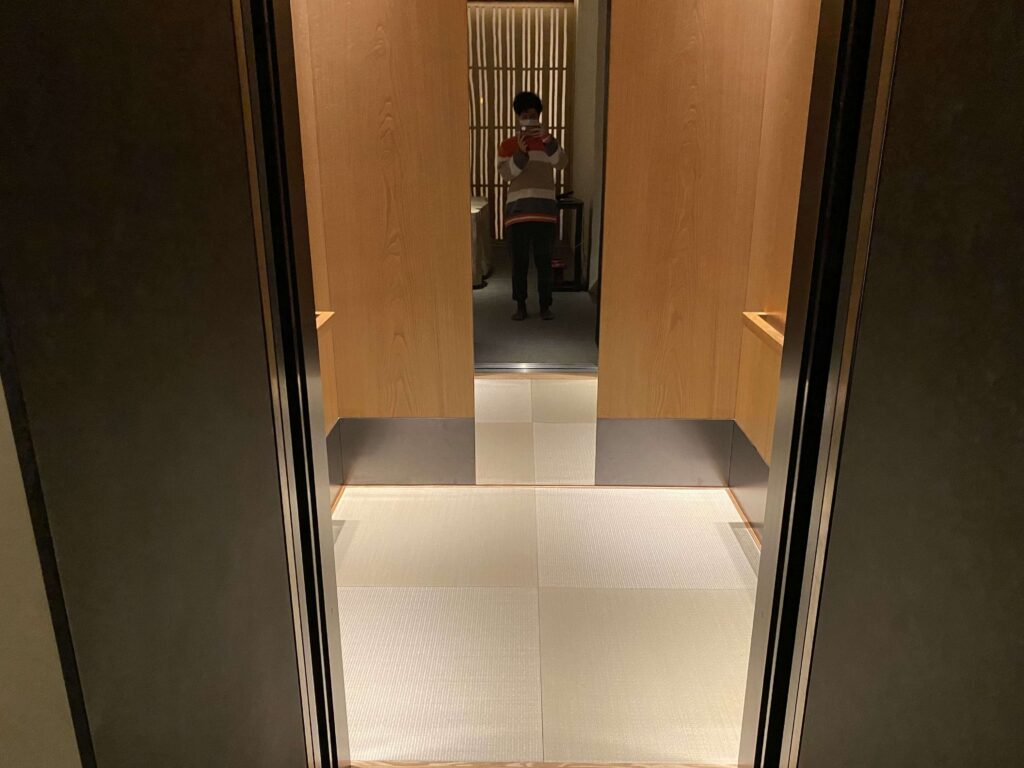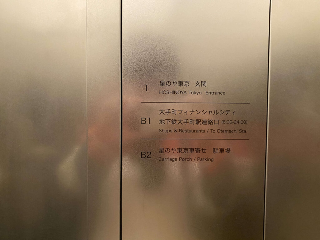 ついに星のや東京到着!ここは地下口なので、ここからエレベーターに乗って、エントランスへ向かいます。