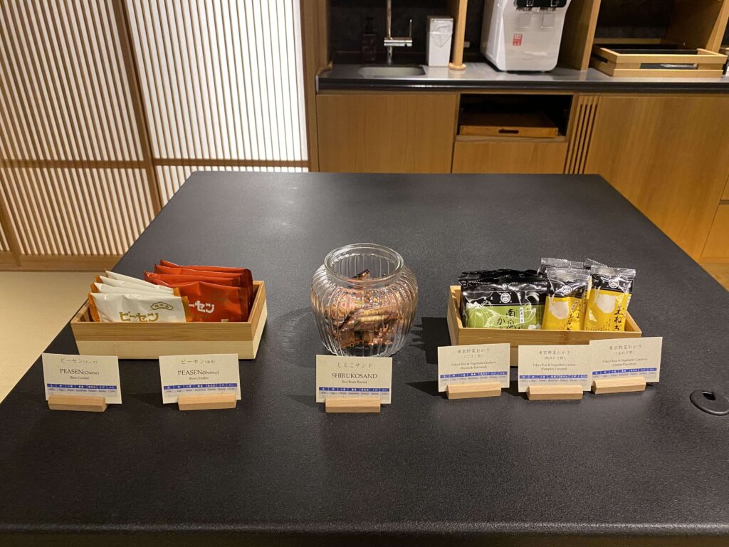 お土産が買えるコーナーもあるので、ぜひご覧になってみてはいかがでしょうか。ホテルブランドのグッズとか誰が買うの?って思ってしまうほど冷めている僕ですが、星のや東京のお土産コーナーはワクワクしました…