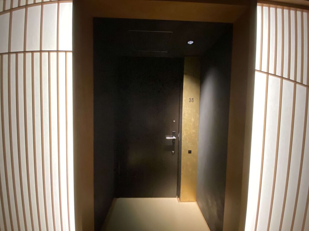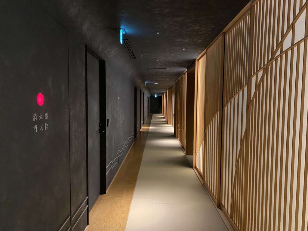 星のや東京のお部屋は、1階に6部屋しかありません。そのため、ワンフロアに単純計算6部屋×2人で12人程度しかいないことに。そのため、まるで自分たちしかいないような感覚に陥りました。