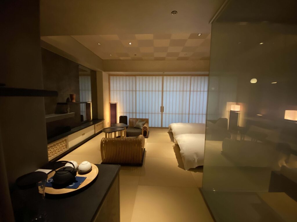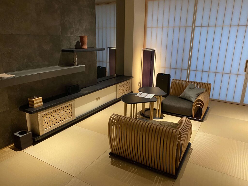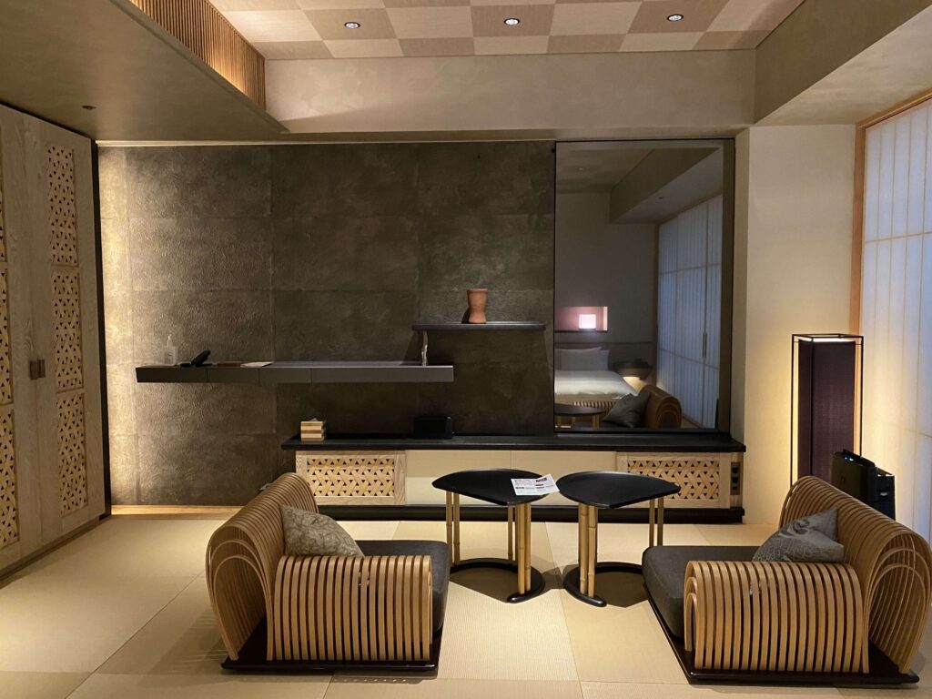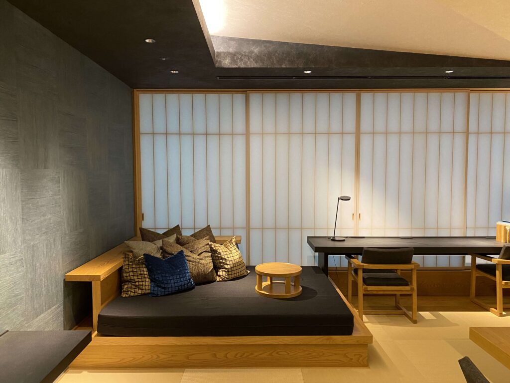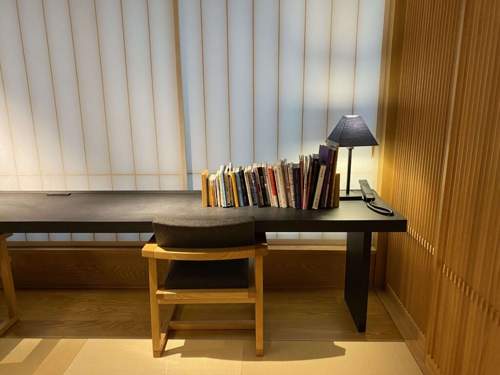 星のや東京の値段を払う人がこのようなスペースにくるイメージが全然湧かなかったんですよね。(星のや東京の値段って、東京で一番ホテル代金がおそらく高いアマン東京についで、値段が高いんです。)