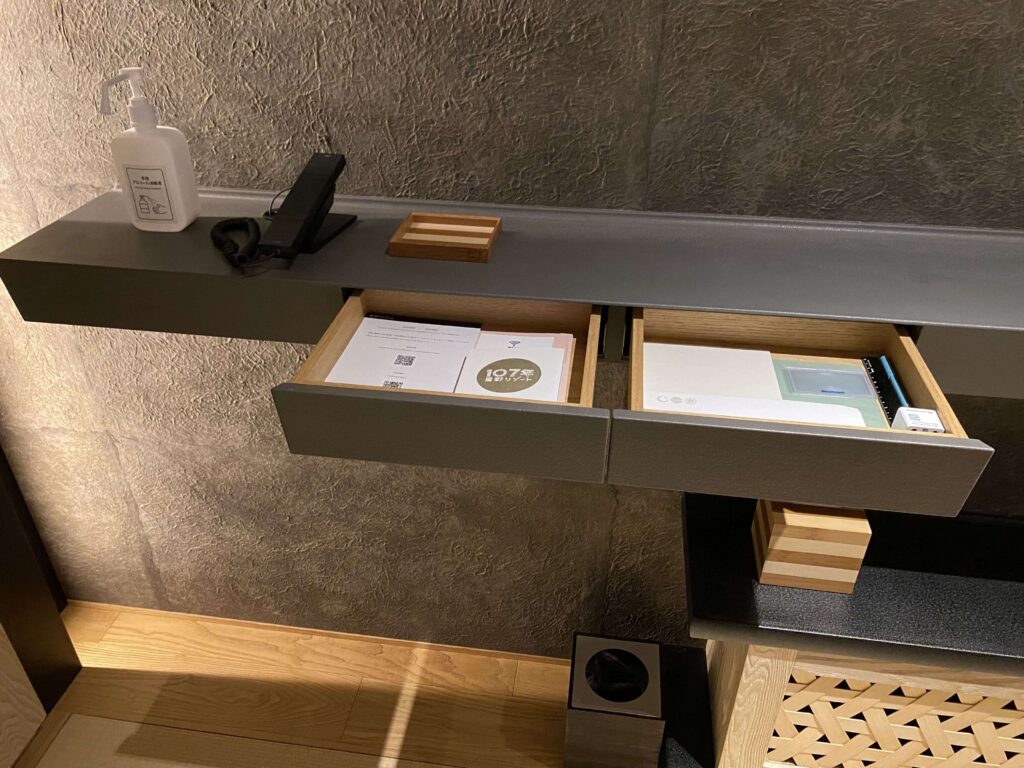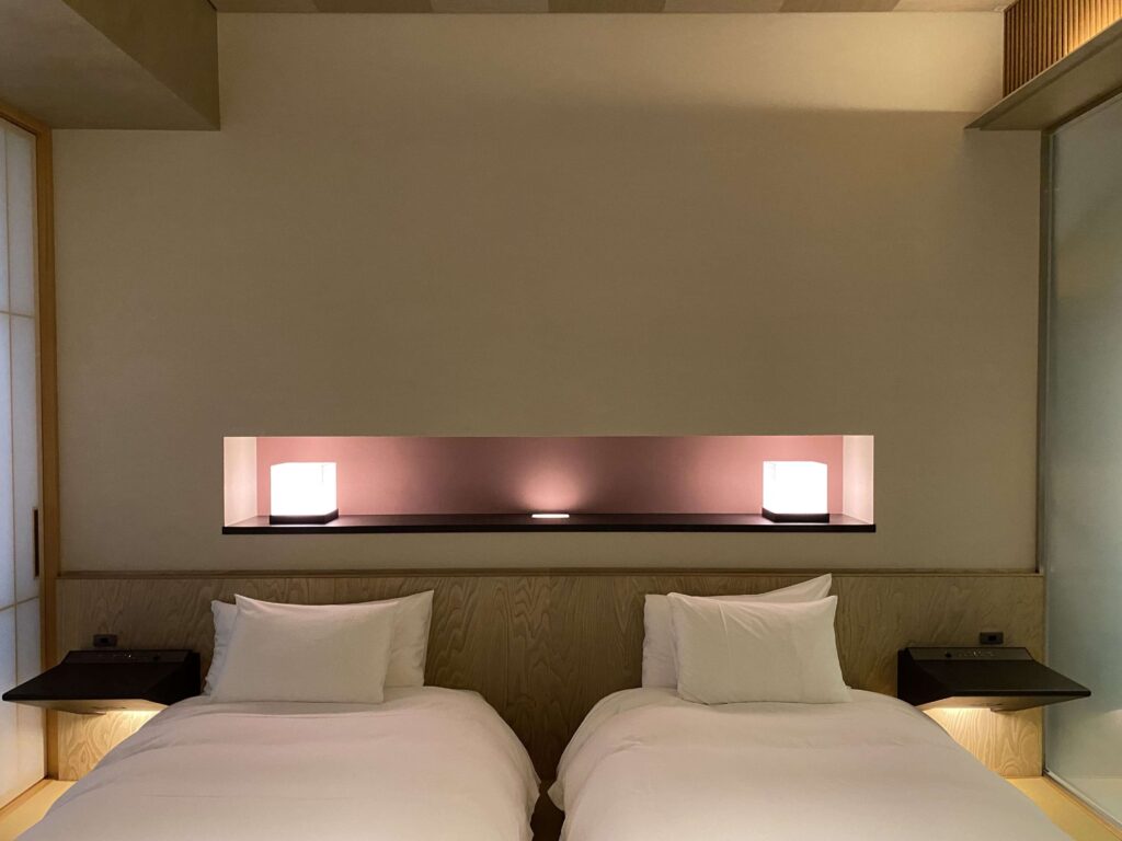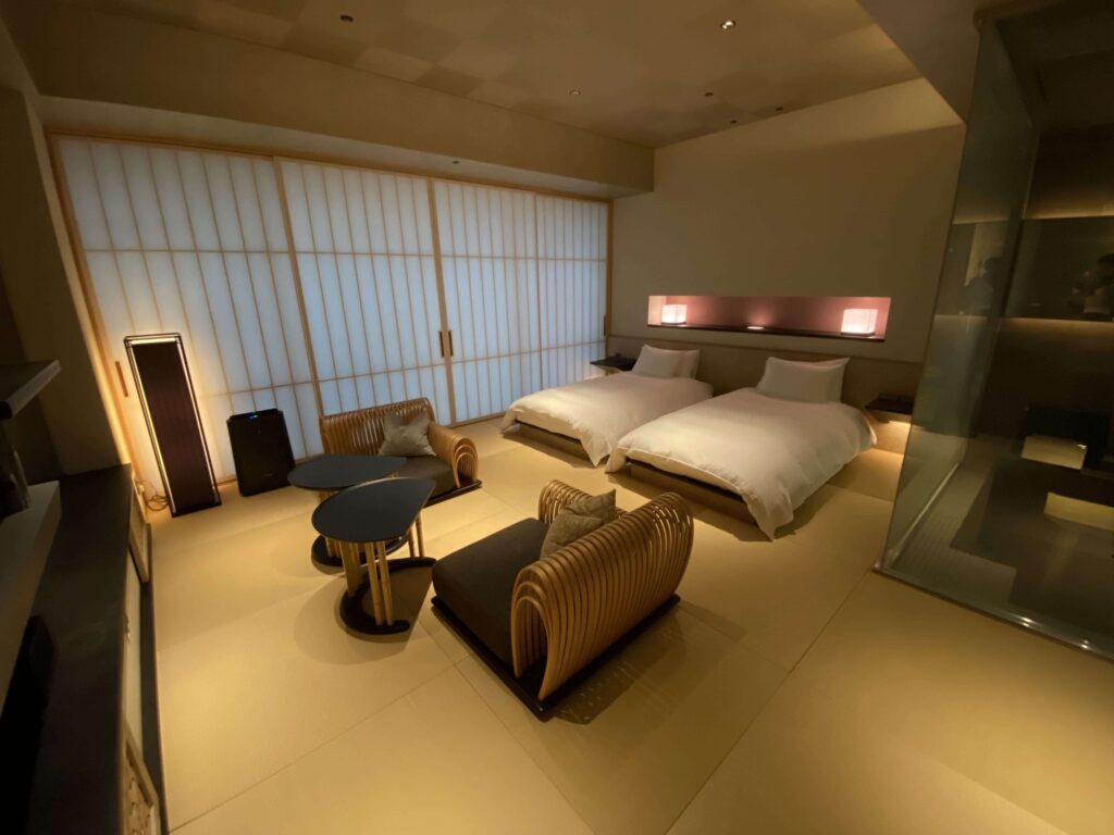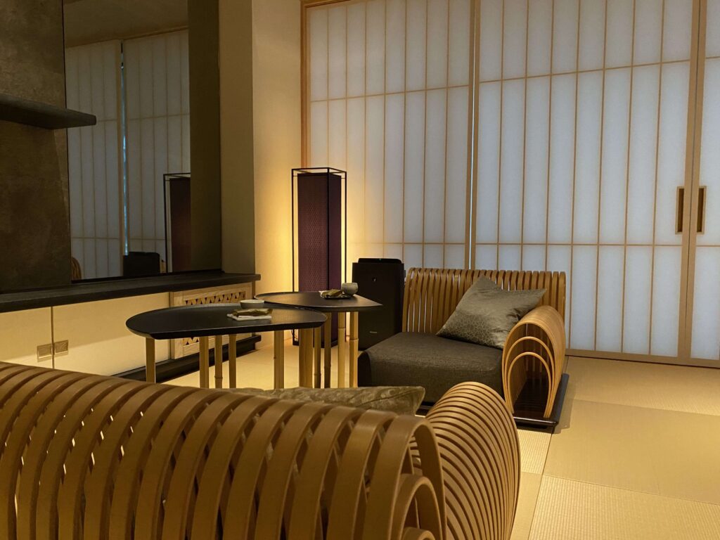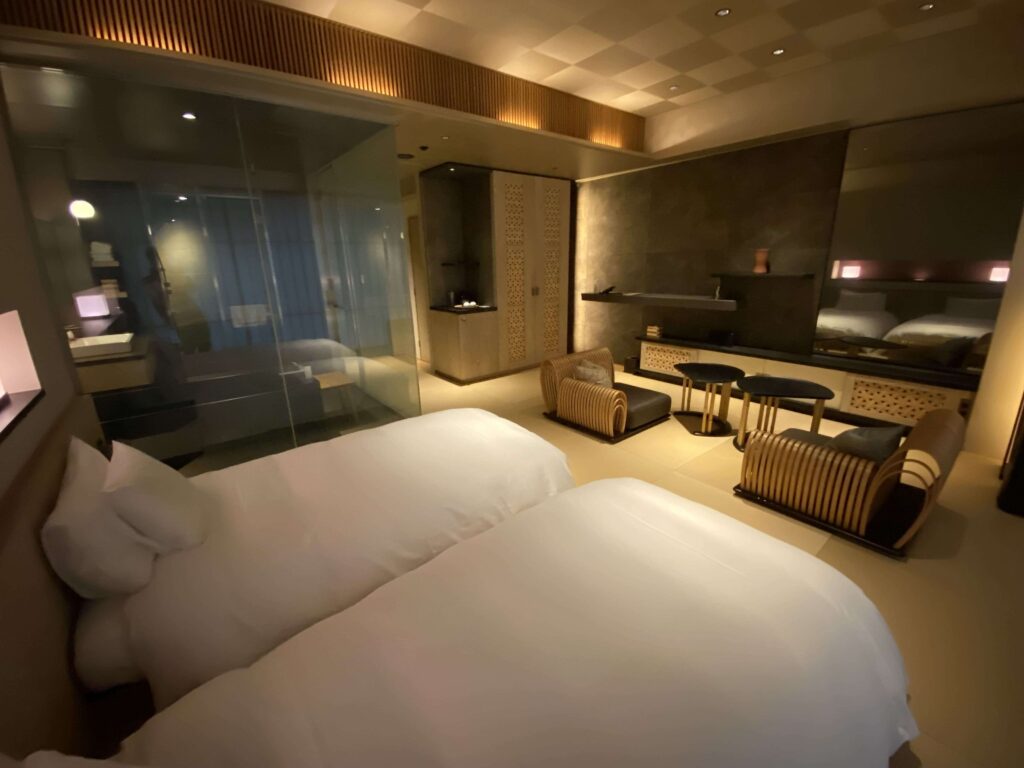 星のや東京の値段を払う人がこのようなスペースにくるイメージが全然湧かなかったんですよね。(星のや東京の値段って、東京で一番ホテル代金がおそらく高いアマン東京についで、値段が高いんです。)