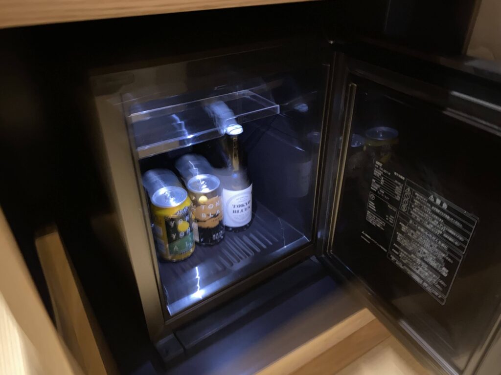 ぶれている(泣)よなよなエールなどが設置。思ったより良心的な値段だったので、お部屋でビールを一杯もあり!