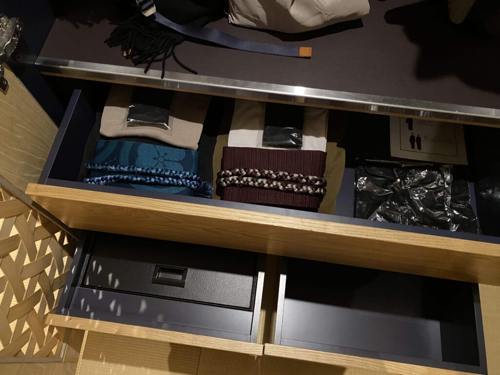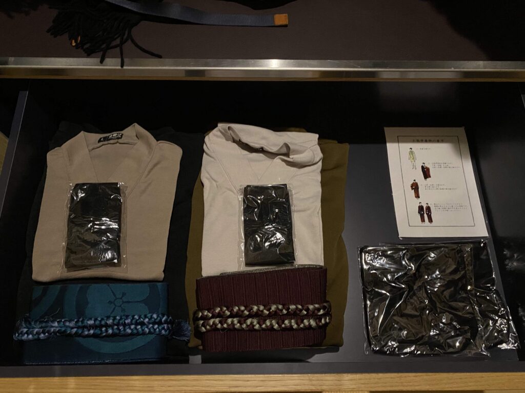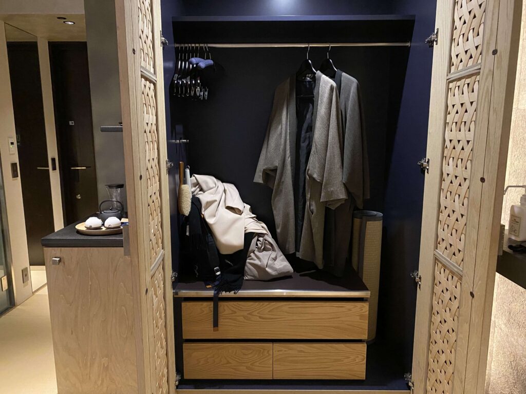 広々としていて、さすが5つ星ホテル!って感じのクローゼットの中身でした。浴衣を着れば、外出もOKなんだとか。東京の都会を温泉旅館の浴衣で歩くって不思議ですよね。いとをかし。
