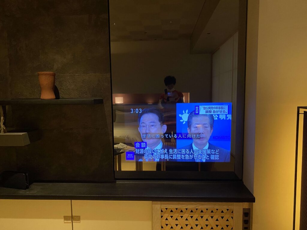 ちなみに星のやはどこも非日常を楽しんでもらうために、テレビは設置しないというスタンス。なのですが、星のや東京はビジネスのお客様も多いとのことで、開業当初からテレビを設置しているんだそう。