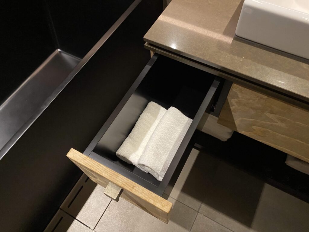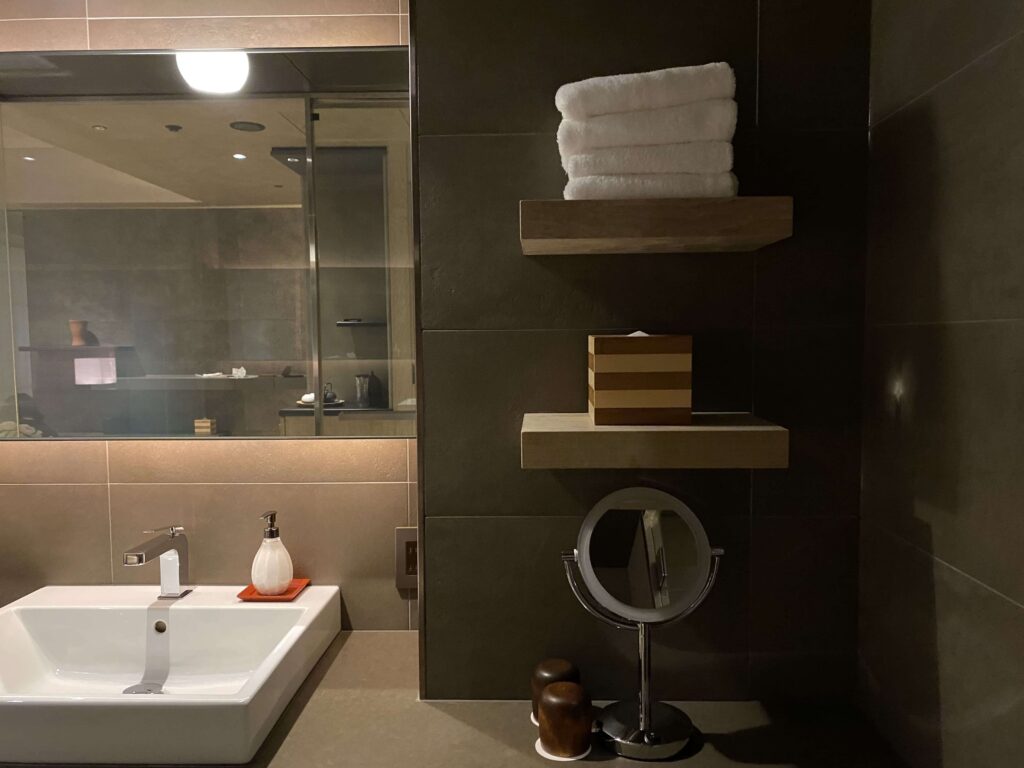 バスアメニティ類は、プラスチック削減のためか、持ち帰り不可。ここでだけで楽しみましょう。マンダリンオリエンタルやアマン東京など、最高級ブランドホテルも、持ち帰り不可だったので、今後こういった流れは増えていくのではないかなと思っています。