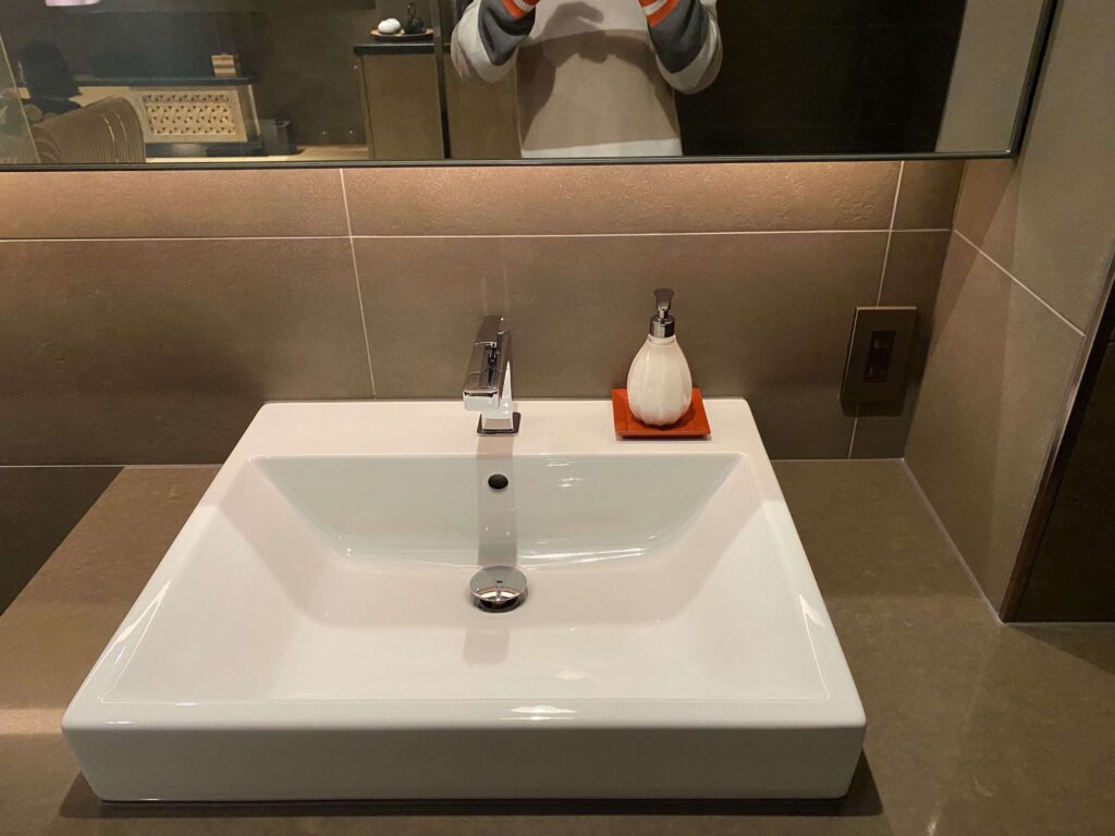 シンク周りは特に優美さはなく、シンプルな感じ。ダブルシンクを期待しましたが、1つだけ。旅館がコンセプトなので、しょうがないですよね。