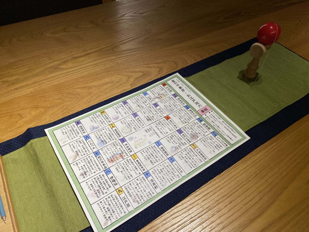 デスクの中心には、日本ながらの遊び道具!嬉しいですなあ。