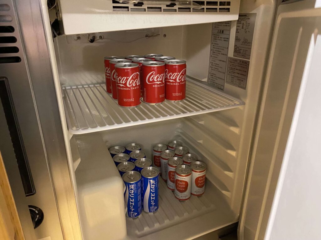下にある冷蔵庫には、コーラやポカリ、りんごジュースなどが揃っていました!