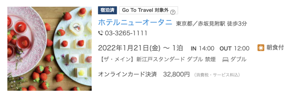 ニューオータニは、帝国ホテルとThe Okura Tokyoに宿泊した時点で、残る1つのホテル御三家に泊まろうと決めてました。コンプリート欲が高いとだめですね(笑)