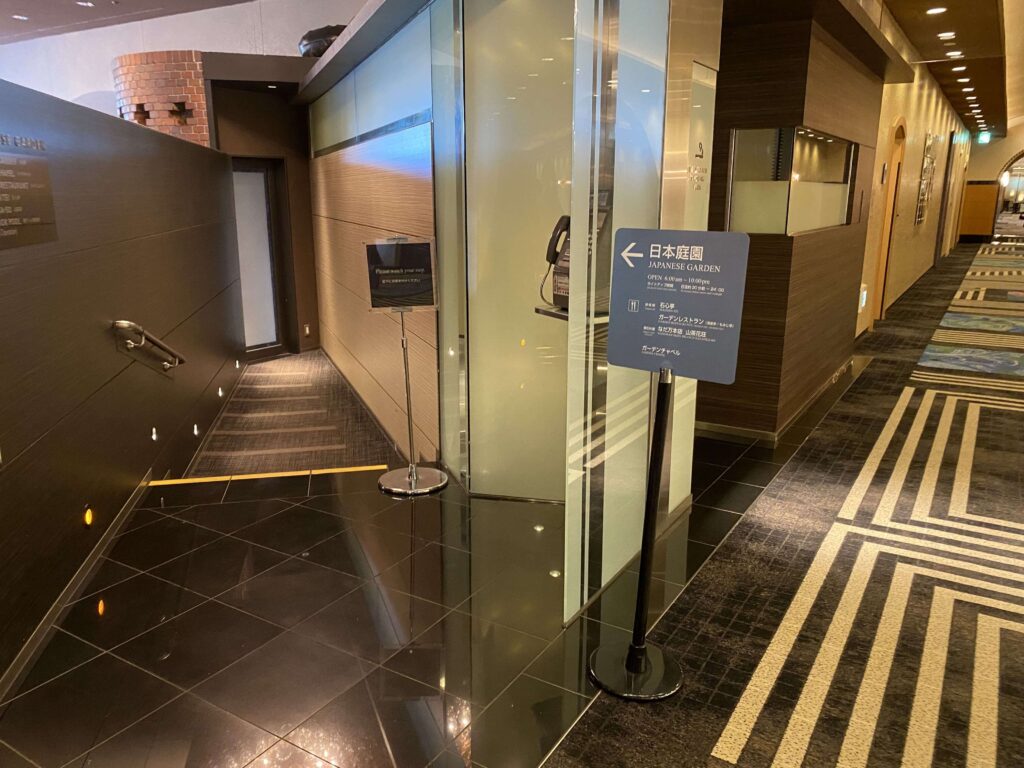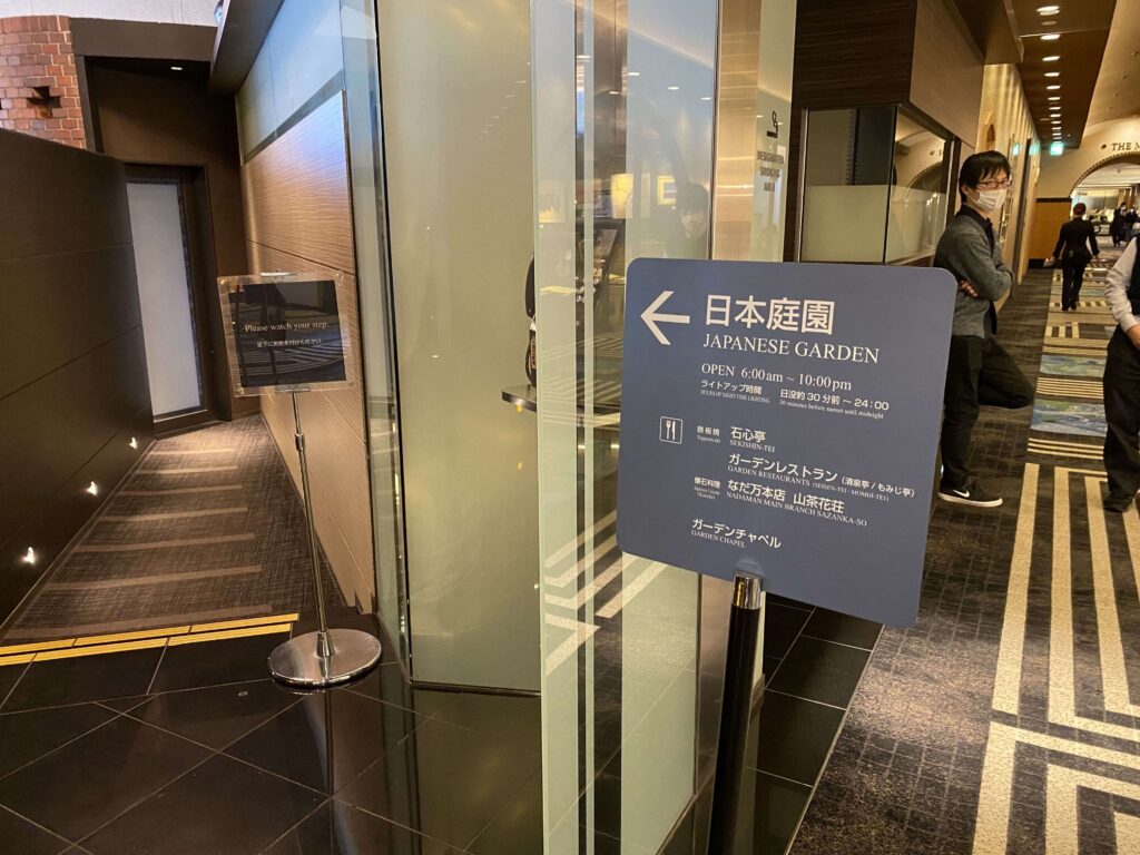 庭園への入り口は建物のいろんなところにあって、一番わかりやすいのはメインタワー寄りのガーデンタワーの以下の部分。