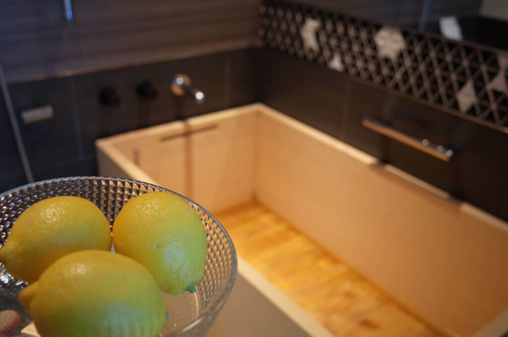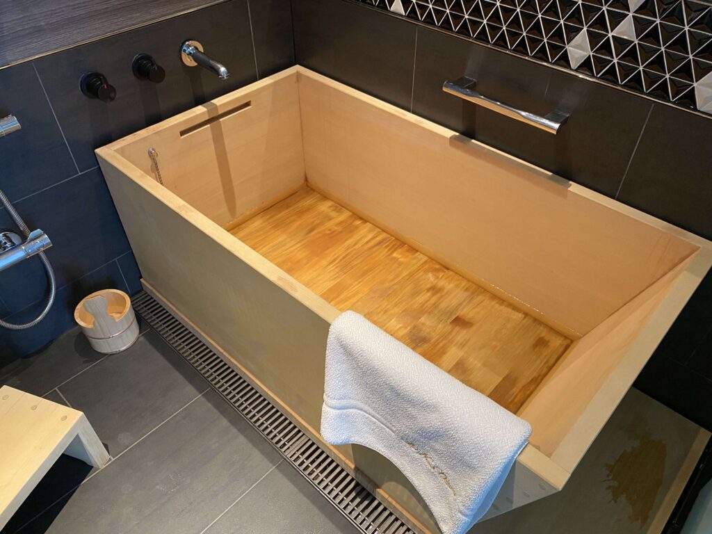 5つ星ホテルに泊まる時は、基本的にバスソルトを入れて1日の疲れを癒すのですが、ヒノキ風呂で大満足!