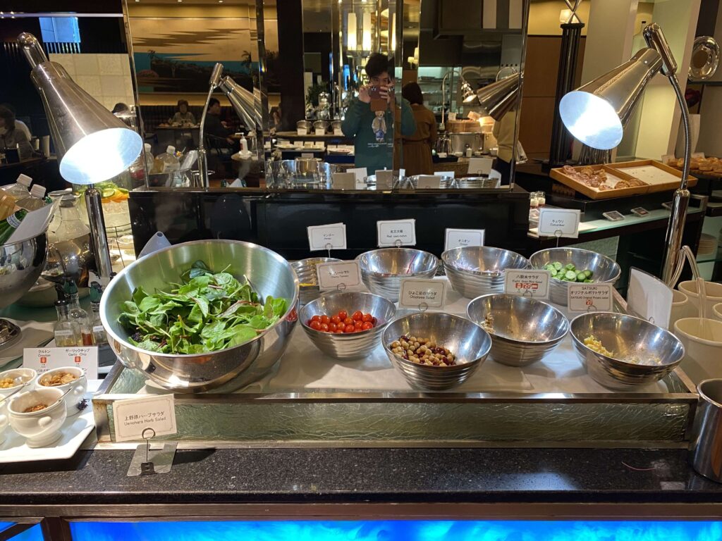 その反対柄にはセルフのハーブサラダ!野菜のラインナップも豊富で嬉しい。