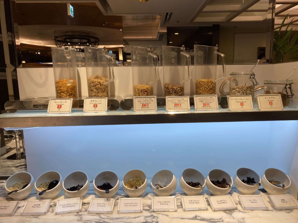 グラノーラとナッツやドライフルーツ系。これだけでもこんなに種類があることに感動。3〜4つ星ホテルだとあってせいぜい2〜3種類くらいですよね。見ているだけでテンションが上がります。