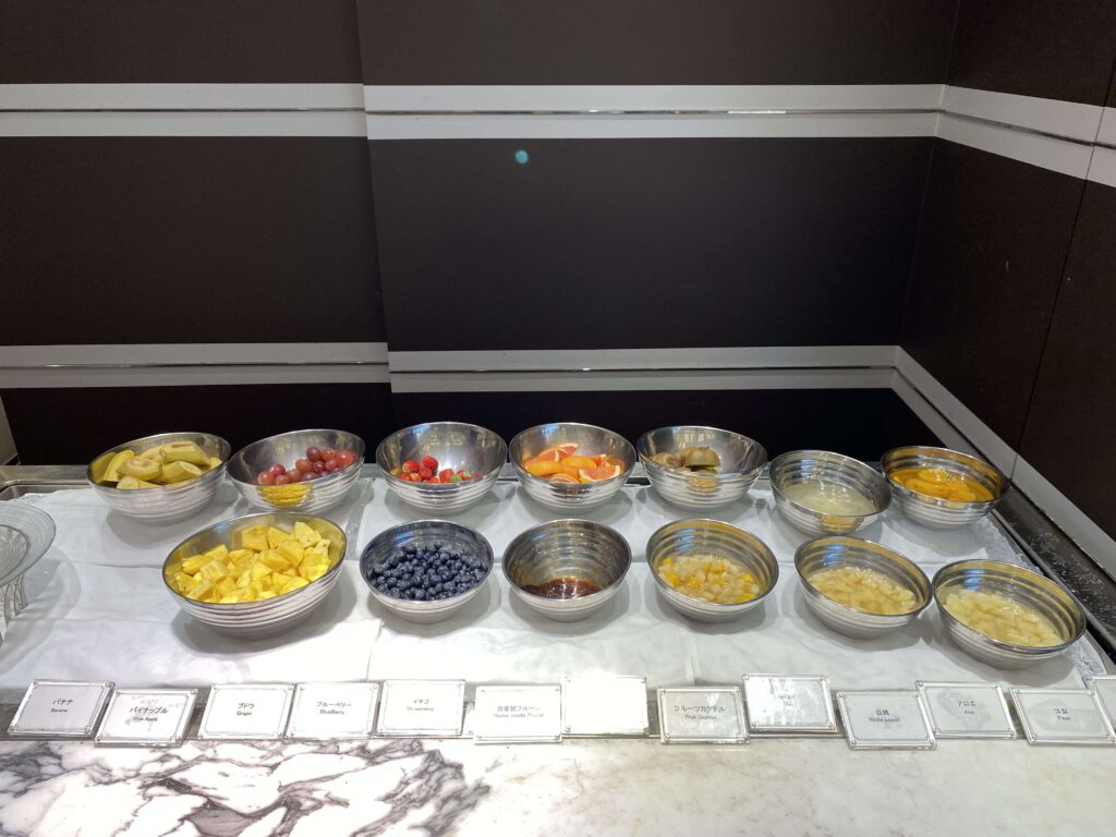 隣にはフルーツコーナー。フルーツだけで何種類あるんじゃーい!って思いました。定番のオレンジやパイナップルはもちろんのこと、メロンやブルーベリー、いちごもあって嬉しい。