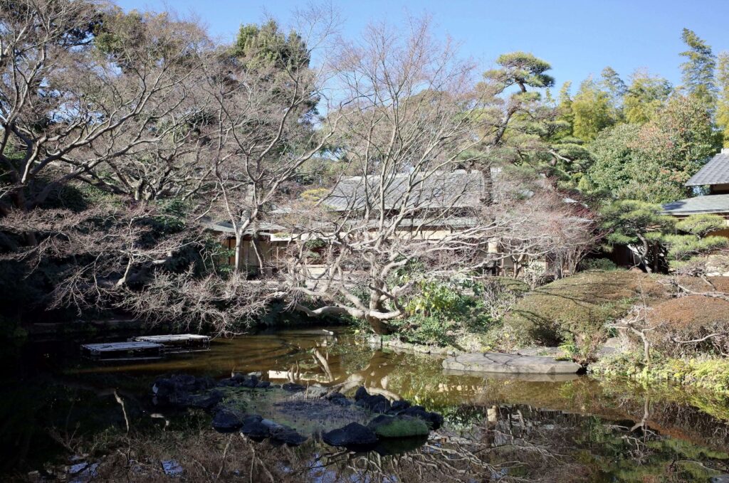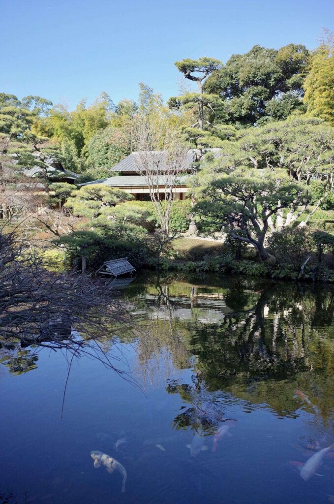 伝統的な日本家屋で建てられた山茶花荘と池がナイスマッチ。