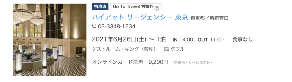 ハイアットリージェンシー東京 宿泊情報一休で予約して、値段は破格の9,200円…!朝食なしとはいえ、これは泊まらなければ!!!と思い、予約しました。