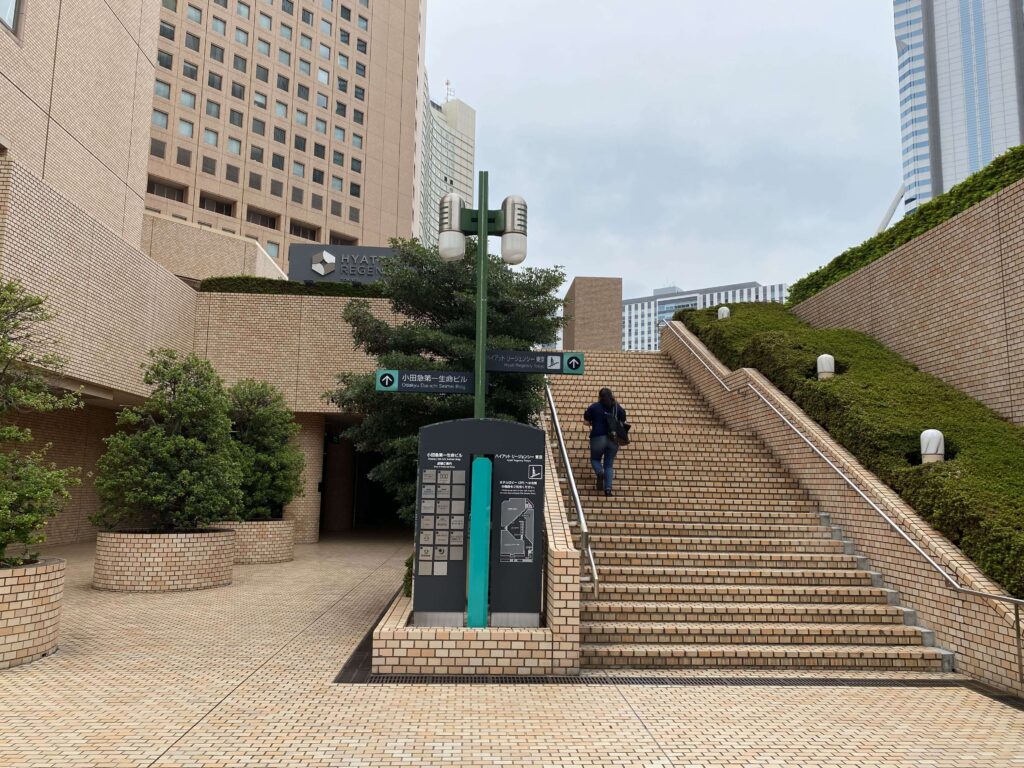 ハイアットリージェンシー東京 の看板ハイアットリージェンシーの看板の横を歩いてくと…階段があるので、ここを登っていきます!