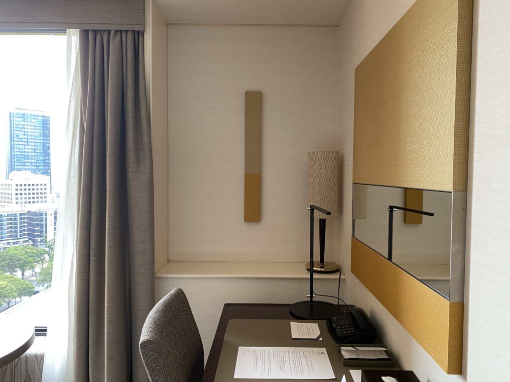 お部屋によって風景は異なりますが、お近くにあるパークハイアットや東京駅近くのマンダリンオリエンタルやシャングリ・ラの方が風景は良いなあ、という印象を抱かざるを得ません。