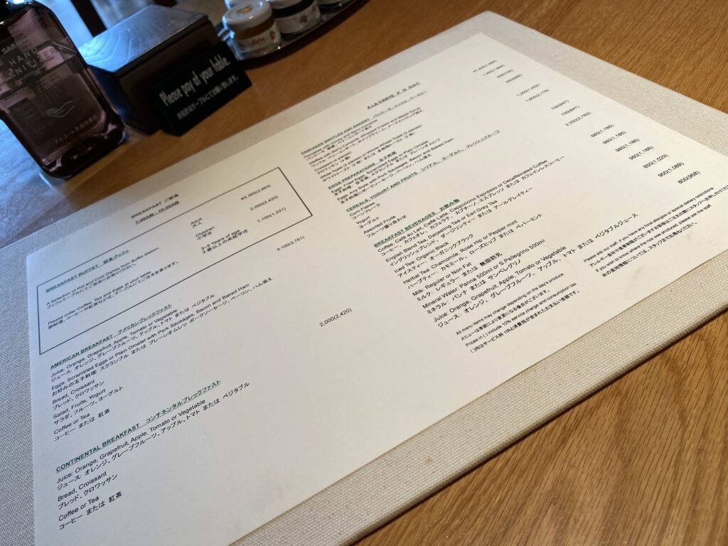 朝食のメニューコロナの影響で、泣く泣くビッフェを諦めたことが何度もあったので、もちろんビッフェを選択!