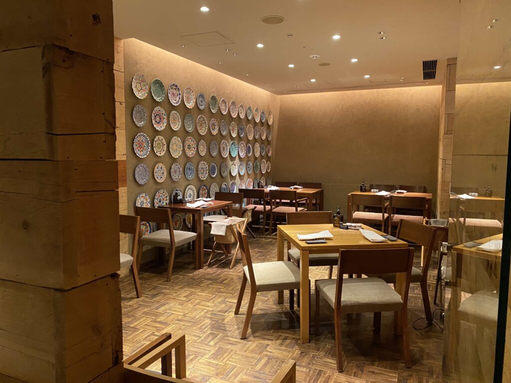 このレストランでいいなあと思ったのが、以下の写真奥に見えたグラスがキレイに配置されている演出。