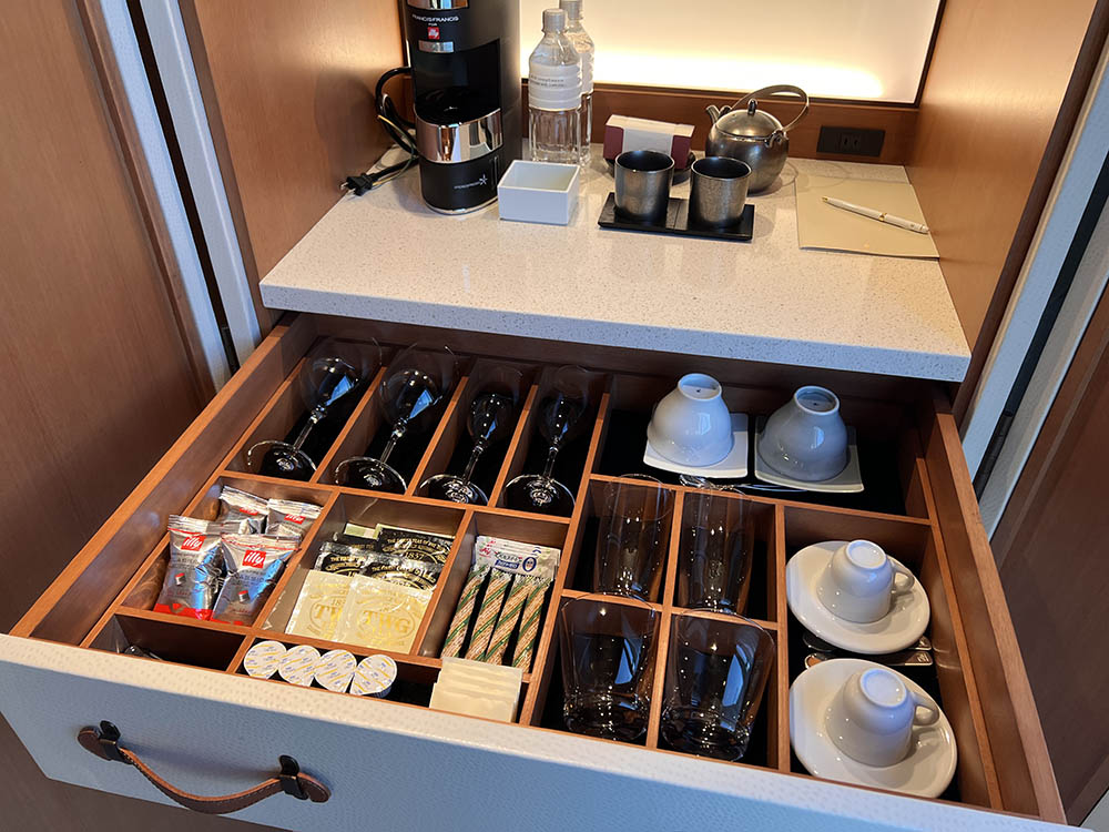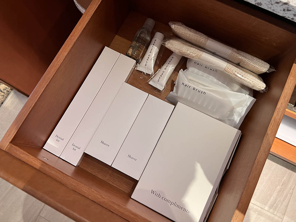 引き出しの中には、アメニティグッズがひととおり設置。ここはまあ、普通でした(イラっとする言い方)