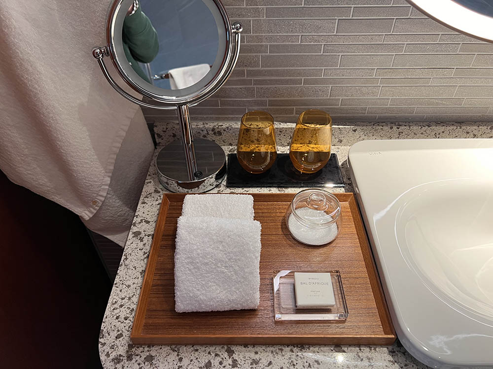 アメニティは、環境を考慮してか持ち帰りができないようになっています。バイレードはかず多くあるスキンケアブランドのなかでも匂いがとてもよくておすすめです…