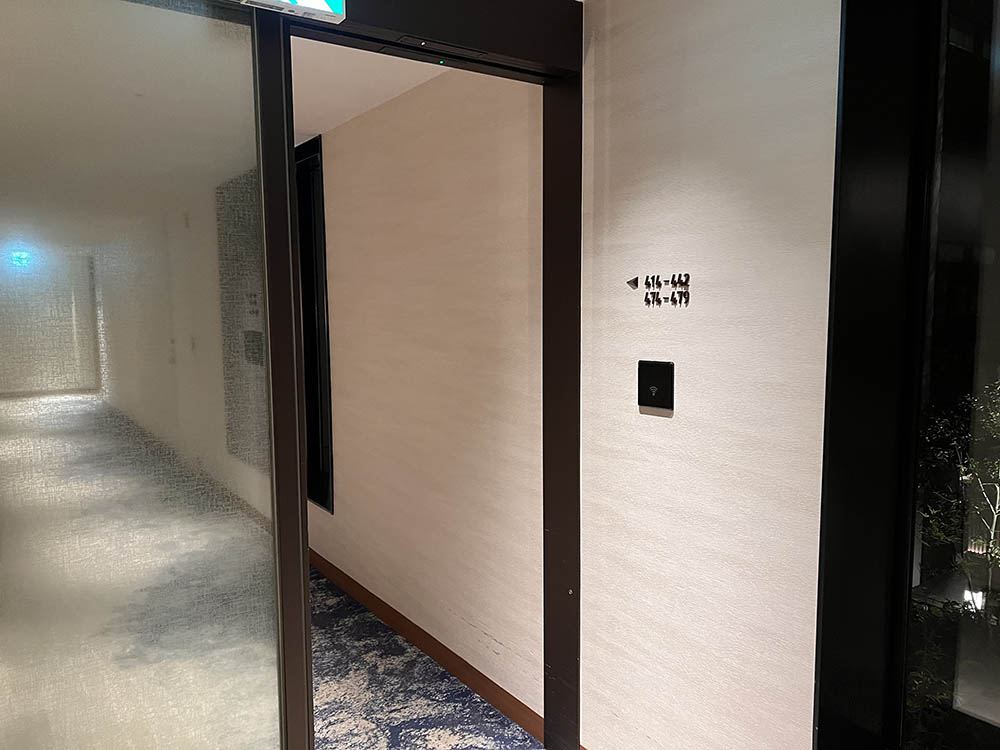 そして、通路です!海を彷彿とさせるじゅうたんに、船にありそうなお部屋前のランプ。一流のデザイナーが手がけたラグジュアリーホテルはやっぱいいなあと思う場所でした。