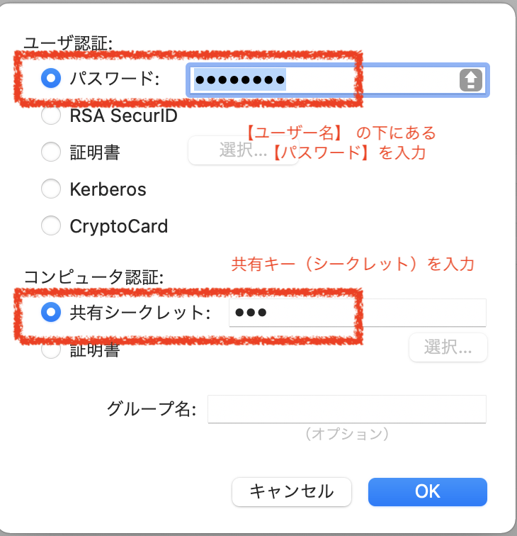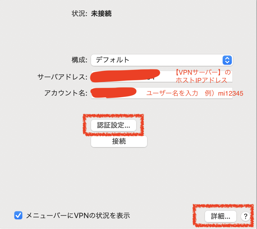 そちらのメールに次にご説明するVPNの設定方法に必要な情報が記載しているので、大事にとっておきましょう。