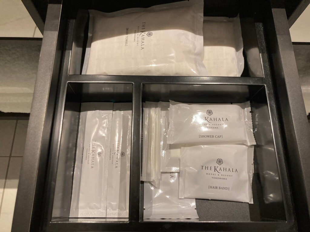 バスルームを破産で、アメニティが配置されている感じでした。飲み物はオリジナルドリンクがあれば、いただくのですが、カハラオリジナルドリンクはなかったので、今回はなんのトライもなし!