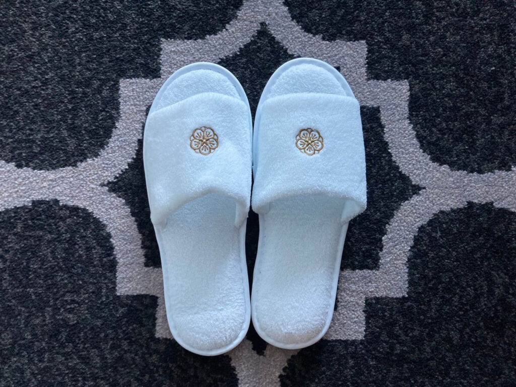 ラグジュアリーホテルの密かな楽しみ、スリッパ。ふっかふかでカハラのロゴ入りがおしゃれ。