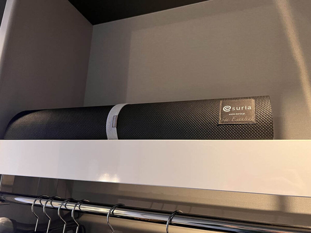 ヨガマットやアイロン・アイロン台も設置。高級ホテルならではのラインアップがしっかり揃っていました。
