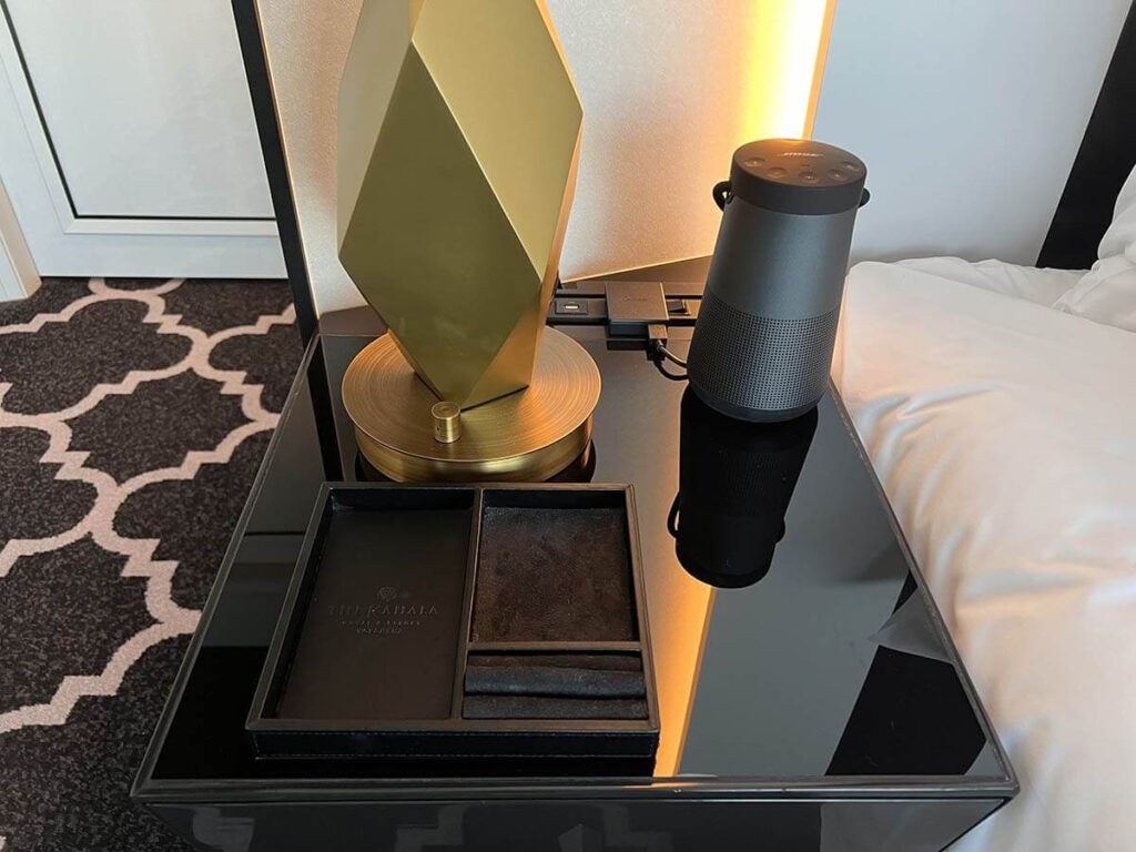 こちらが逆サイドのサイドテーブル。お決まりのBOSEのスピーカーや装飾品置きが配置されています。