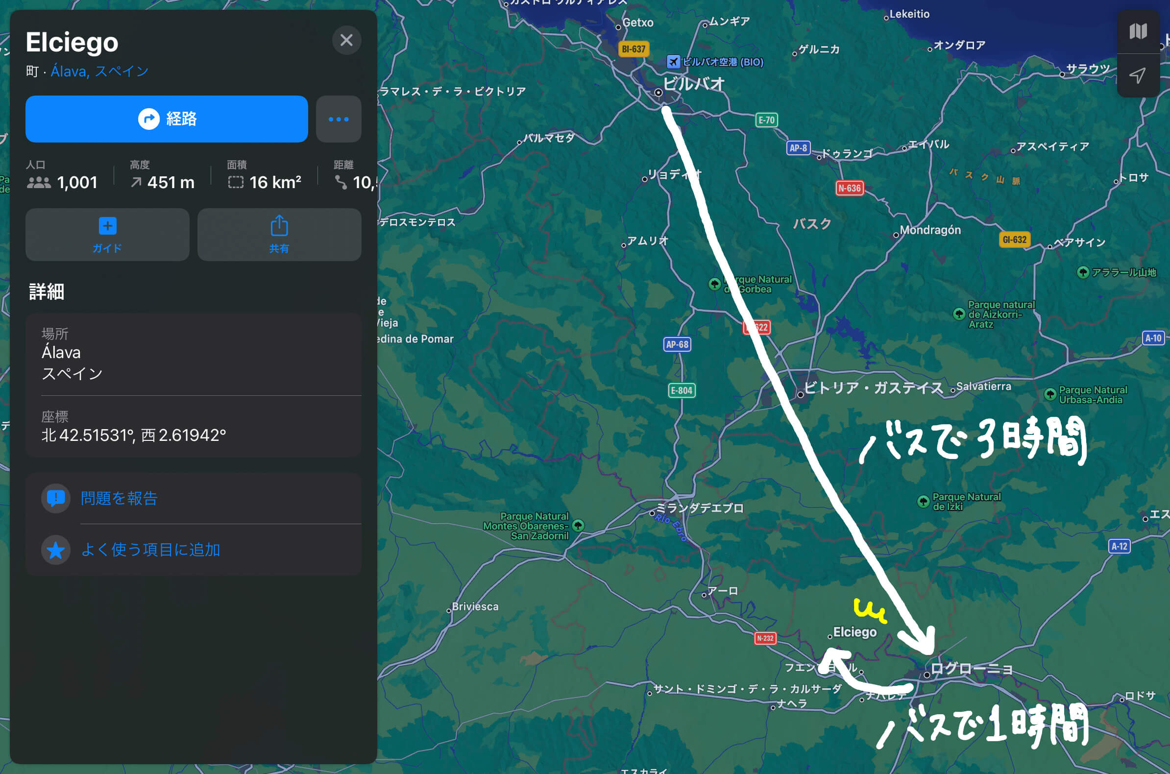 アクセス方法の情報が超少なく、ビルバオ発のバスは現地でしか買えず、ログローニョ発のバスはネットに書いてあるスケジュールと全然違う、みたいな感じ😂