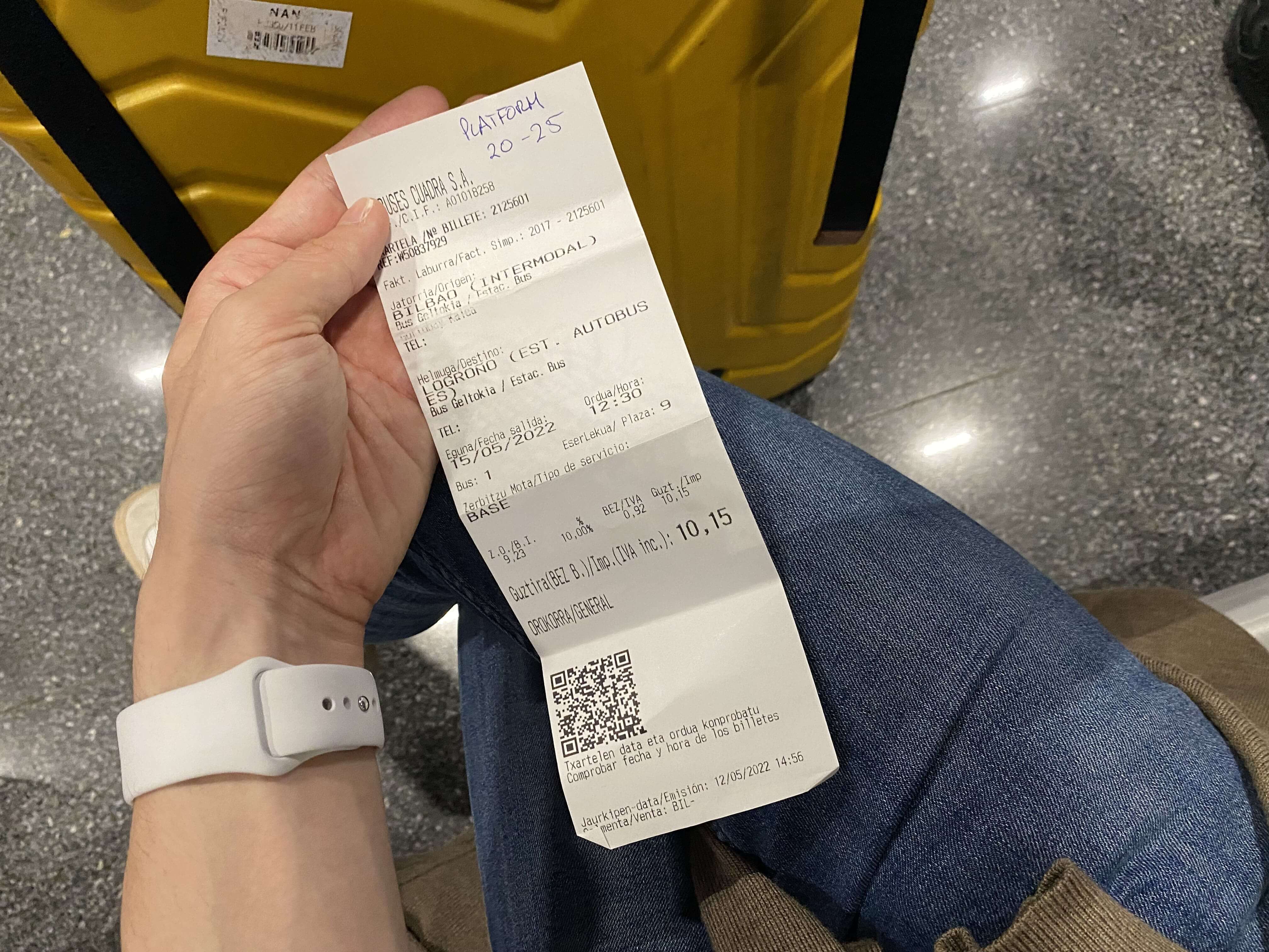 ビルバオのバスチケット売り場は、行き先によって窓口が異なるのでご注意ください。ログローニョ駅行きは10.15ユーロ。※また、ログローニョ行きのバスのチケットは、自動券売機がなかったので、窓口で買う必要がありました。