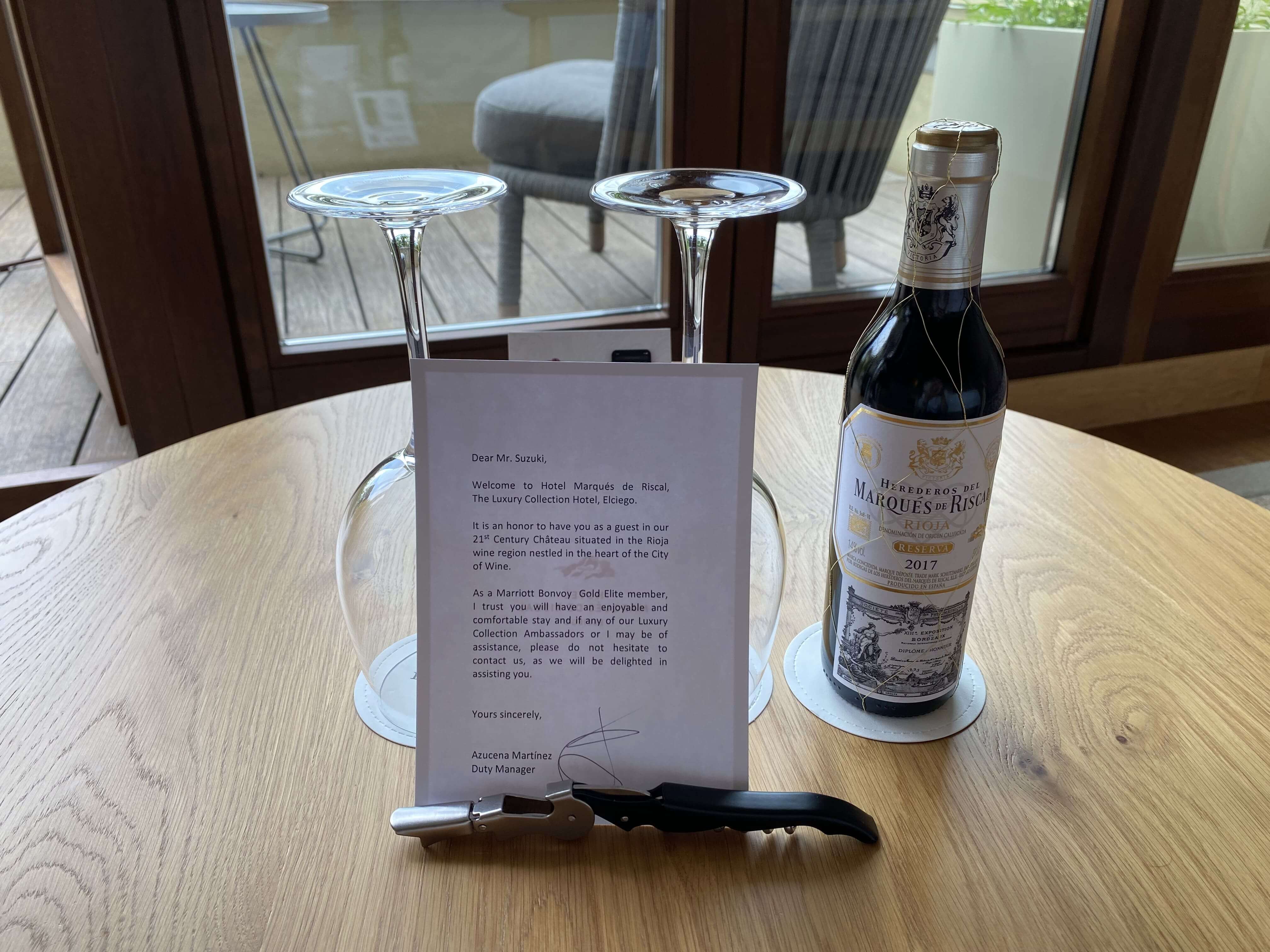 また、マリオットボンヴォイのゴールドエリート特典として、ワイン2杯の無料がついてきました!ラグジュアリーコレクションバンザイ。