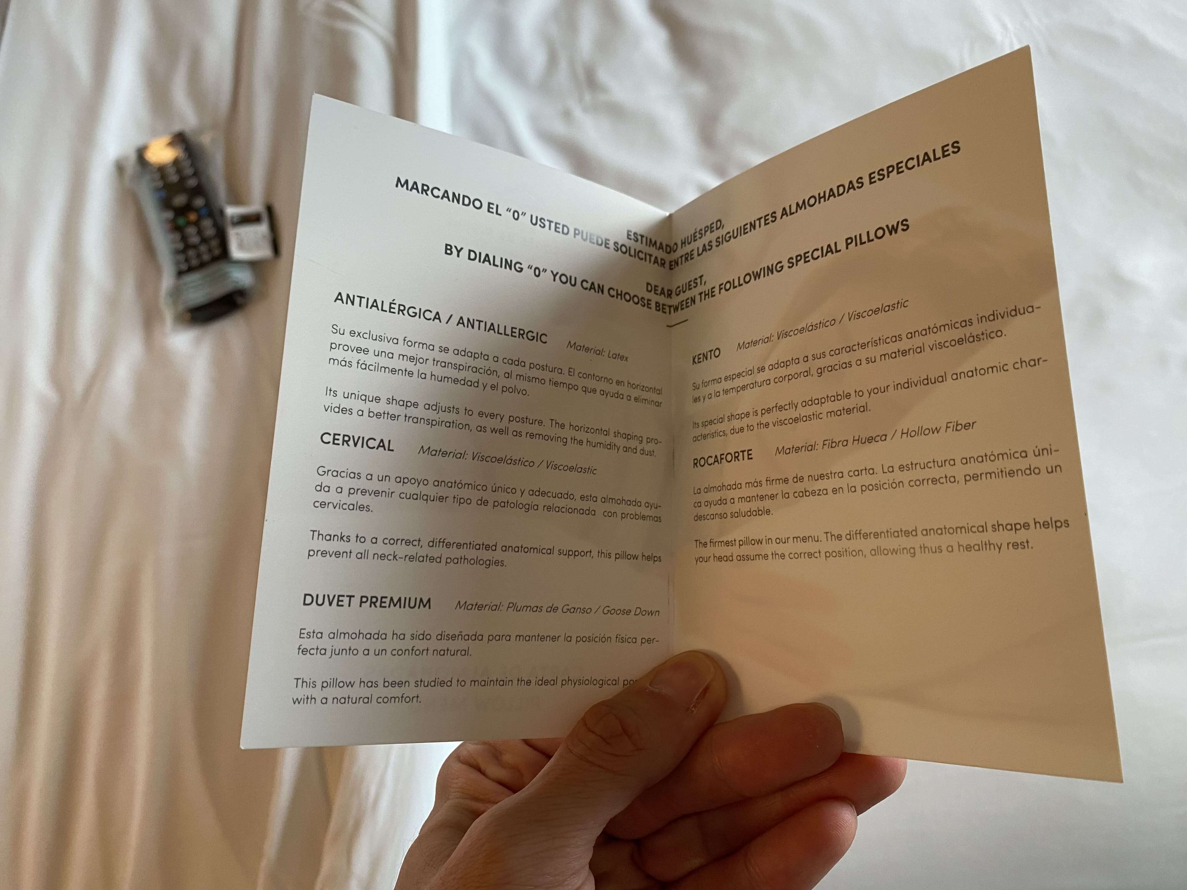 あとは、枕の種類も選べるようでした!さすがラグジュアリーコレクション!