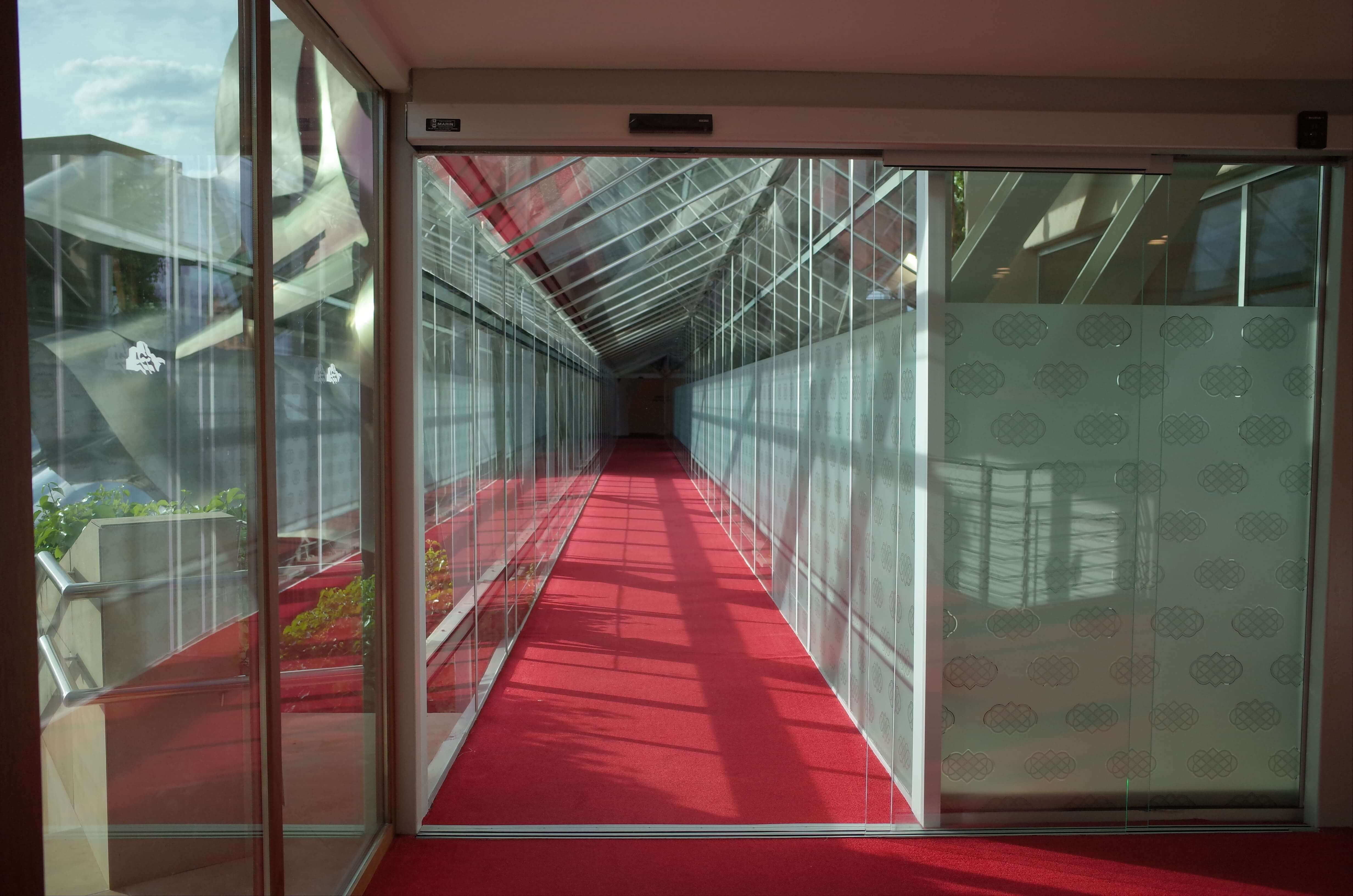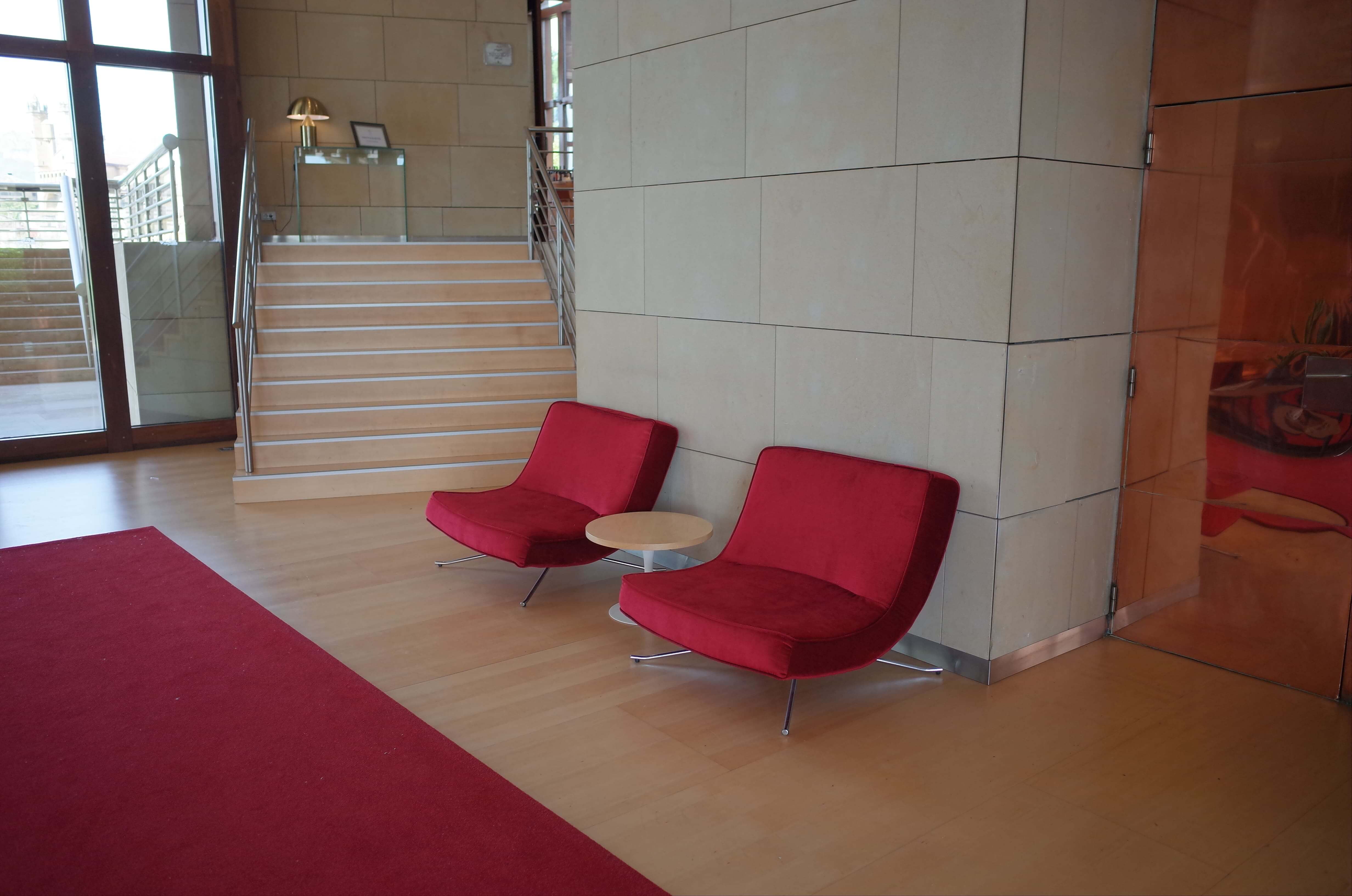 コンシェルジュのデスクも、とてもラグジュアリー。インテリアの赤が本当にすてきすぎる。