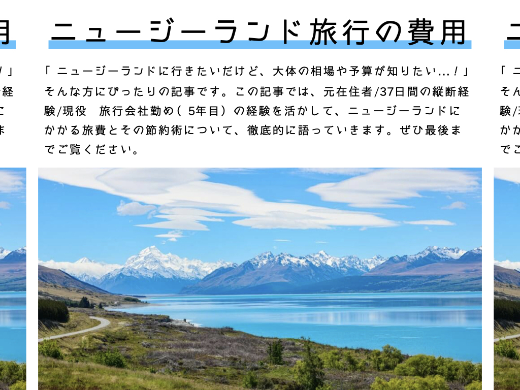 の経験を活かして、ニュージーランドにかかる旅費とその節約術について、徹底的に語っていきます。