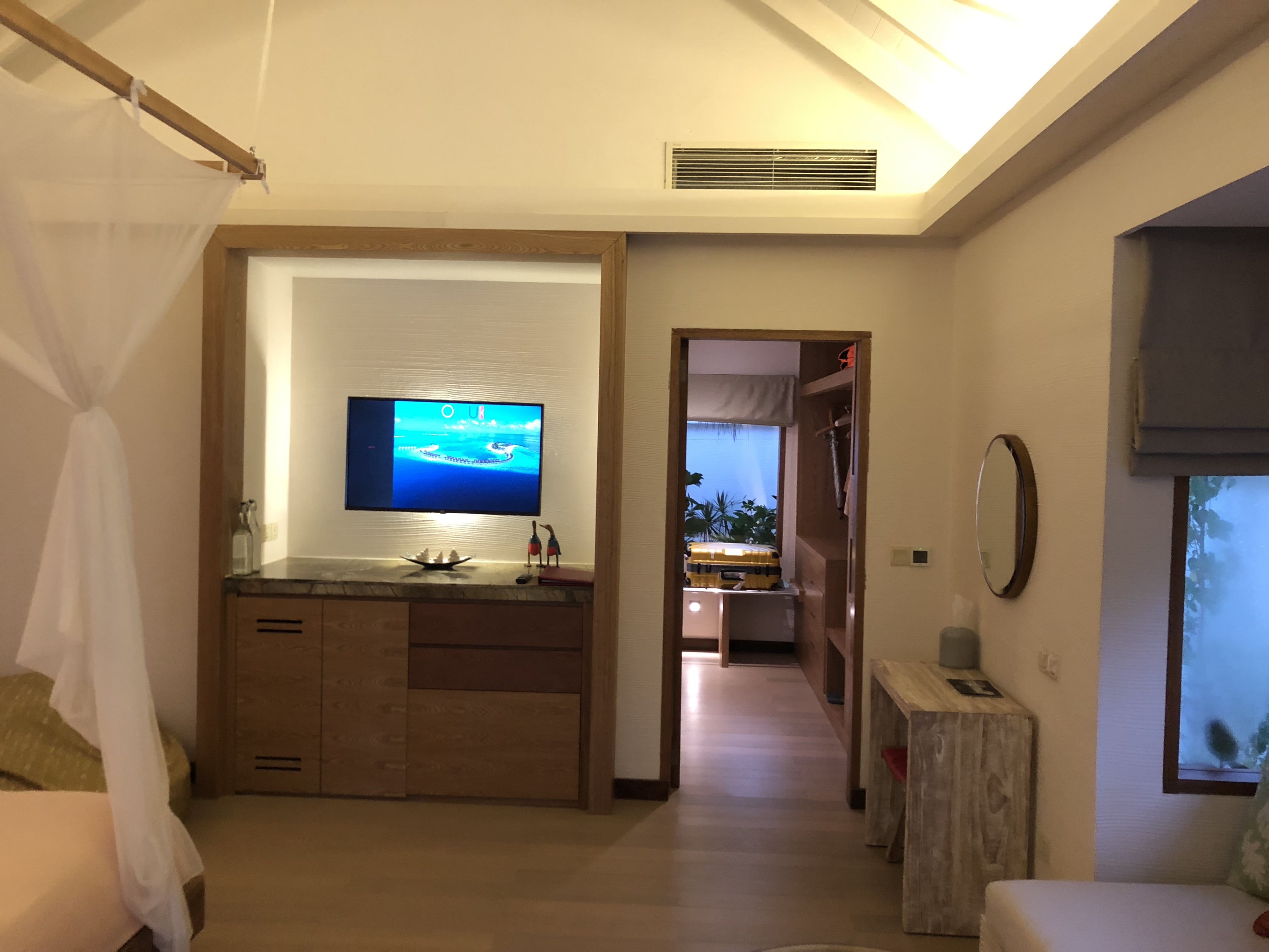 それが、空港から遠い島だと、夜遅くに空港に到着すると、水上飛行機動いておらず、到着した日に行けない。ので、空港のある島に泊まらないといけなくなってしまう。(空港のあるホテルの島には、いいホテルがないので、せっかくモルディブに来たのに…となる可能性が…)