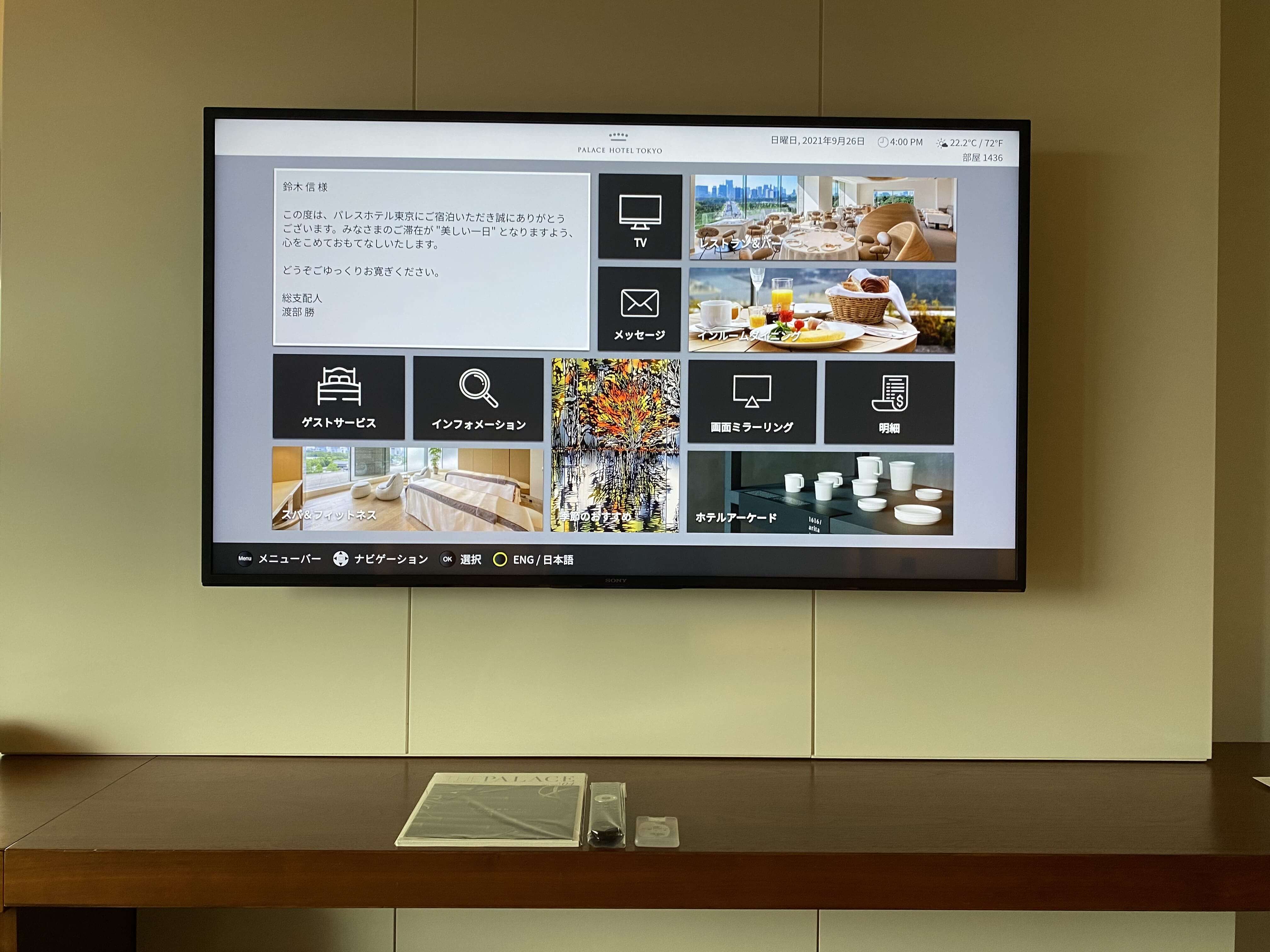 日本で一番神聖な場所と言える皇居に隣接しているホテルで、もうそれにふさわしい荘厳さ。そして、ホスピタリティが高くて、大満足。