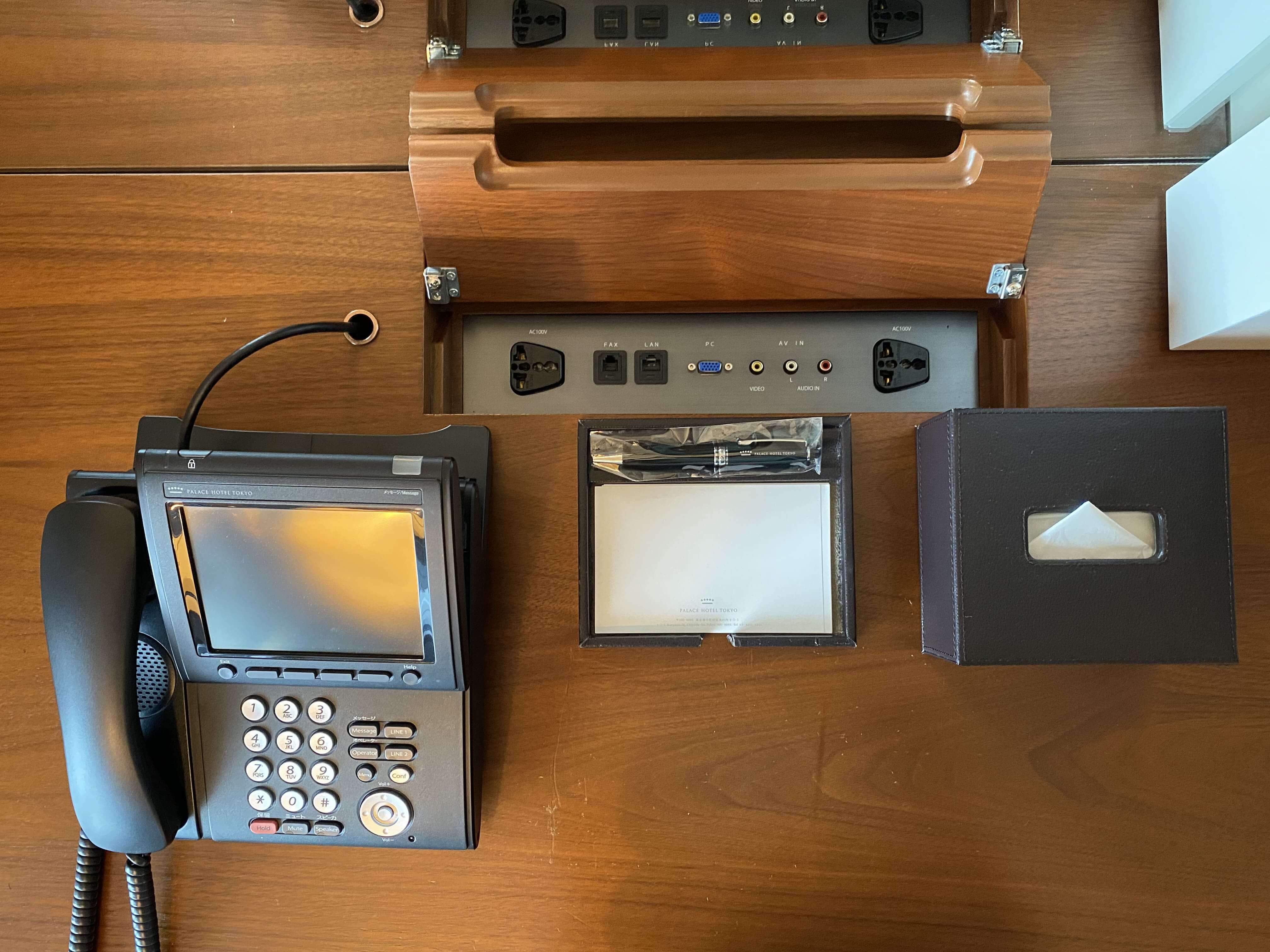 コンセント見えないようになされてる&海外から来られる人用にマルチプラグなの、本当に好感。PCと繋ぐところがあるので、仕事のプレゼンとかもできそう。