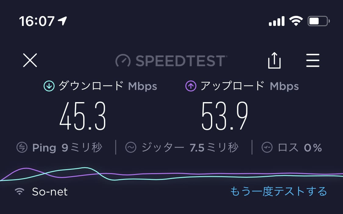お部屋で速度計測したら、こんな感じになりました▼