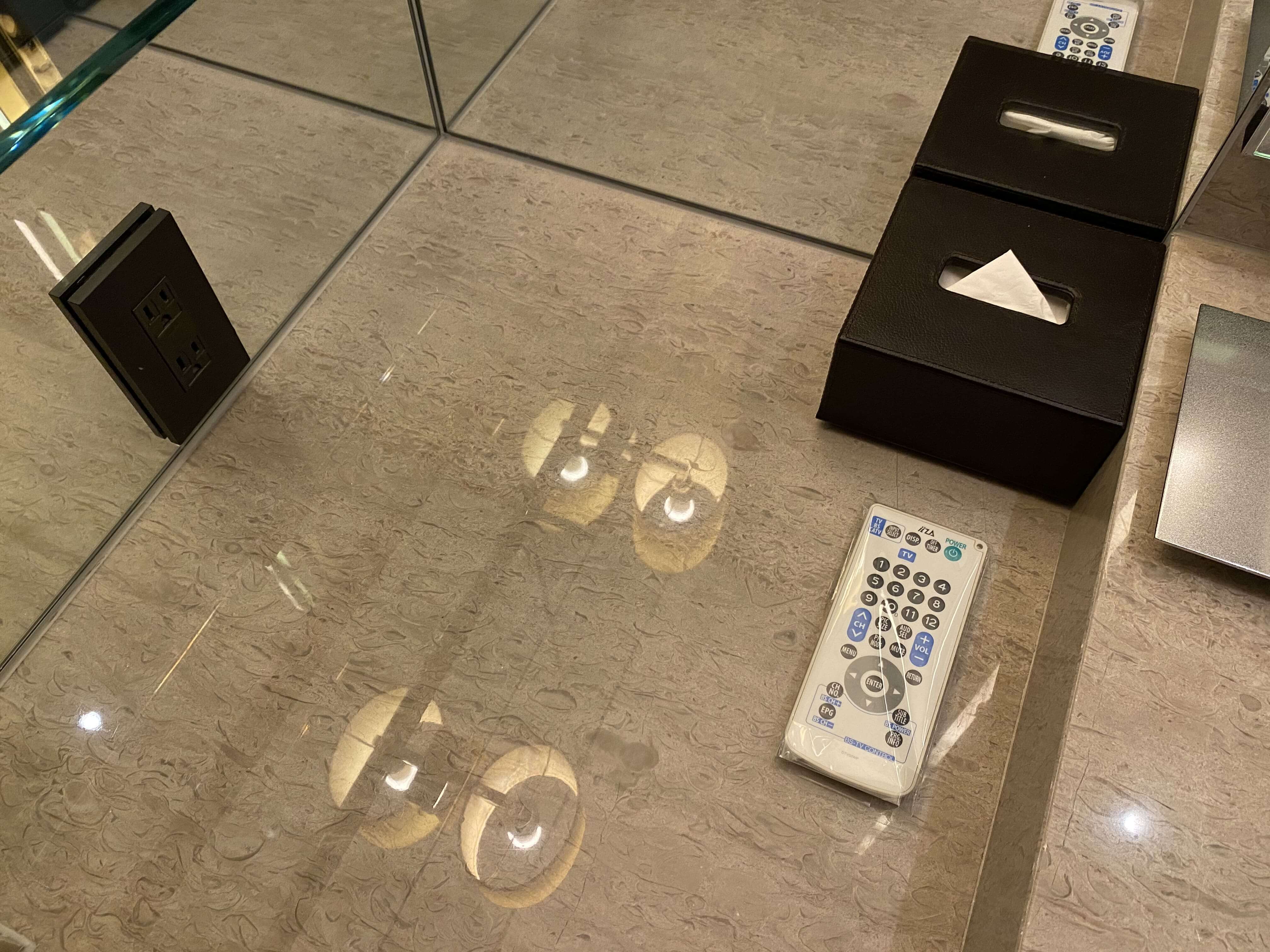 左側にはティッシュとリモコン